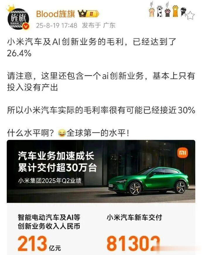 小米汽车毛利率高达26.3%,说明它已进入高端市场,可高端不只是价格高,更是责任重。你不能一边赚着大钱,一边还想着用“免责小字”规避风险。 更让行业紧张的是,小米在“抢蛋糕”时,太不留情面。手机干华为、苹果,家电打美的、格力,汽车撞特斯拉、比亚迪。三条战线同时开火,哪个对手都不是善茬。